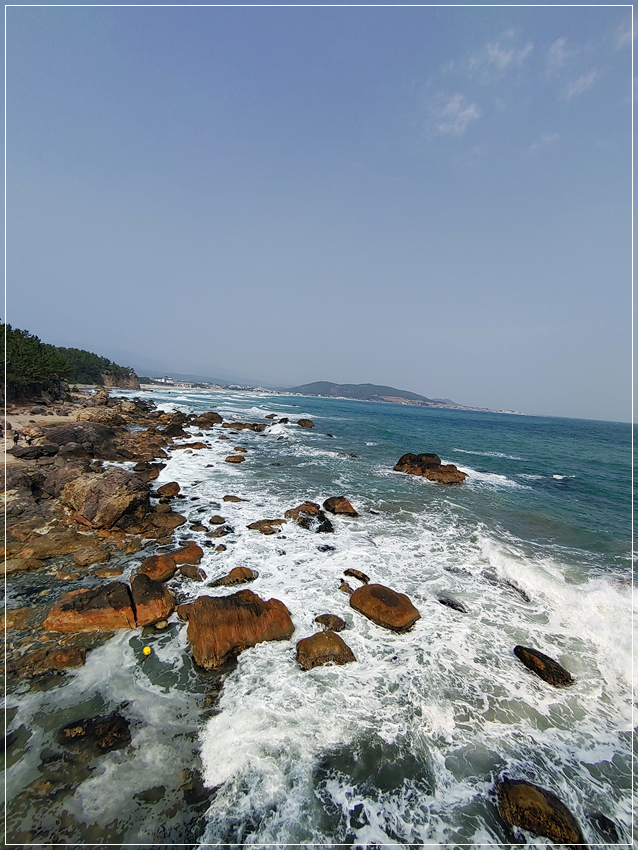 맑은 하늘과 강한 파도가 만들어낸 포말이 멋지게 어우러진다.